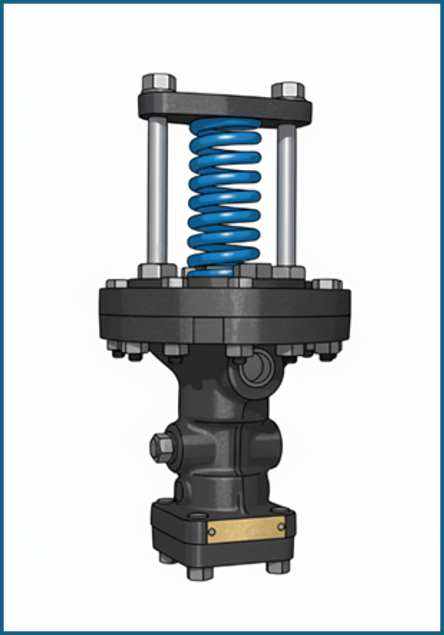 For precise and stable control of steam pressure, particularly under widely fluctuating loads, a pilot-operated pressure reducing valve (PRV) is superior to a simple direct-acting valve. The "brain" of this system is the spring pilot, which acts as a highly sensitive controller that tells the larger main valve how to modulate.