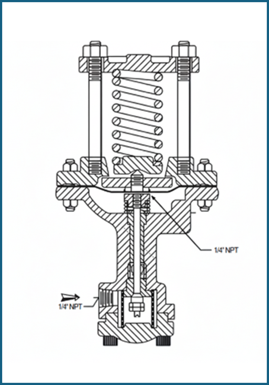 Spring pilots operate on a force-balance principle. The pilot senses the downstream steam pressure, comparing it to the desired setpoint and then responds by driving the valve stem up or down maintain setpoint.